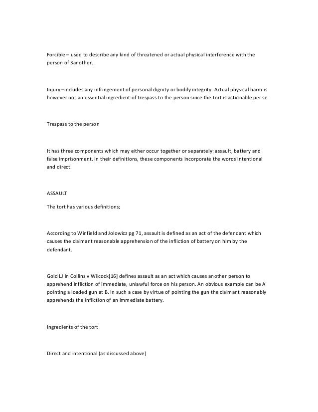 Trespass To The Person Notes Studocu